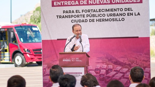 El mandatario estatal, al encabezar la entrega de 21 unidades para Hermosillo con una inversión de 63 millones de pesos, junto a Carlos Sosa Castañeda, coordinador del Instituto de Movilidad y Transporte para el Estado de Sonora, señaló que en su totalidad desde 2021 se han adquirido para la capital sonorense 125 camiones con un recurso de 375 millones de pesos; en tanto que para todo el estado se han entregado 441 vehículos para el transporte público, de los cuales más de 300 corresponden a unidades nuevas.